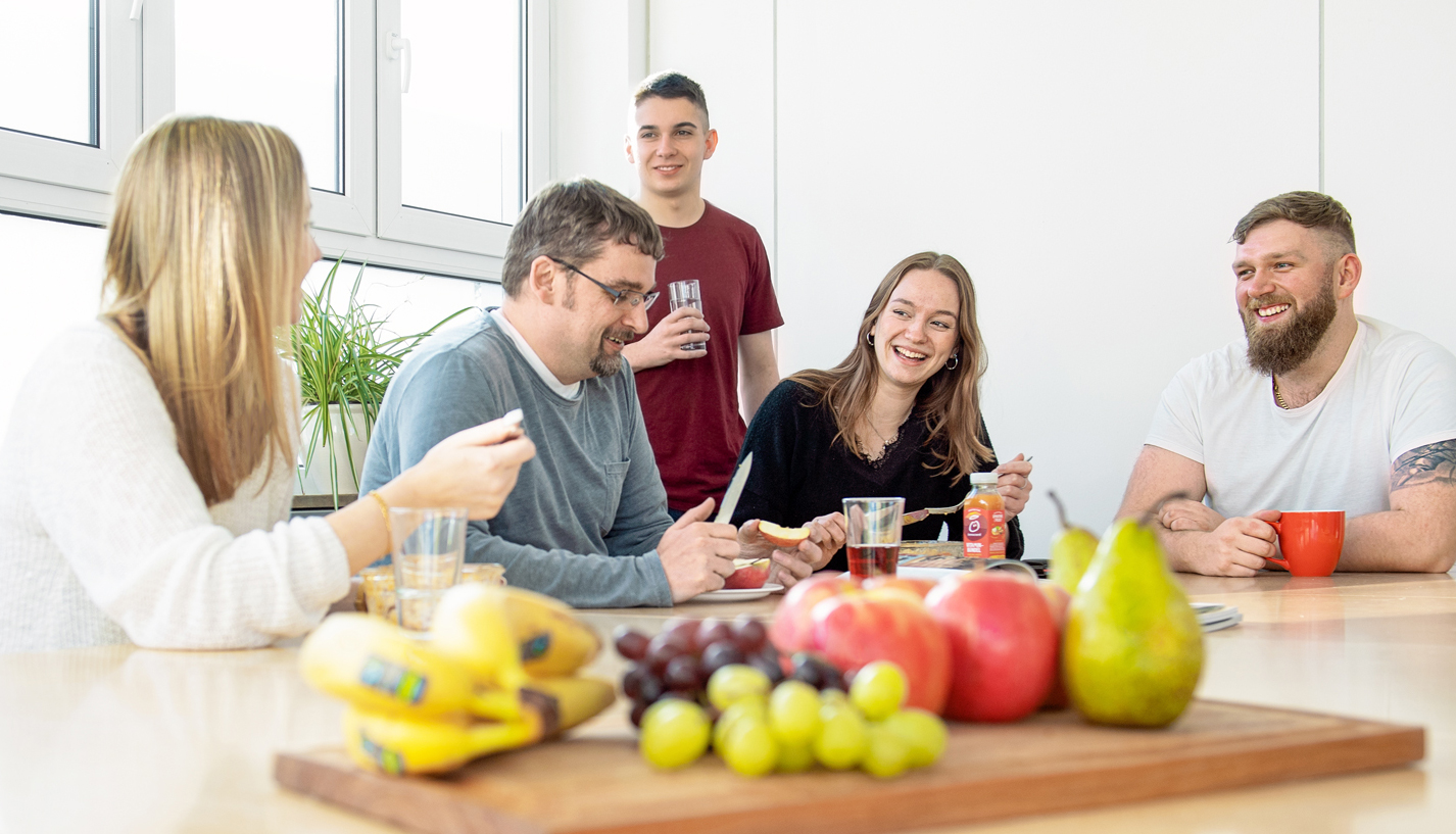 Freu dich auf ein cooles Büro! Lichtdurchflutete Räume mit vielen Pflanzen und Streetart an den Wänden sorgen für eine richtige #Wohlfühlatmosphäre. Es wird noch besser, denn „Standardausstattung“ heißt bei uns: Hochwertige IT und ein ergonomischer Arbeitsplatz. Und wenn du eine Pause brauchst, wartet eine große und gut ausgestattete Küche auf dich und deine Kollegen.